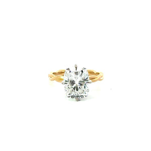 Custom-Made Elongated Cushion Cut Lab Diamond Engagement Ring – Rotated Prongs with Braid Shank– 18KT Gold