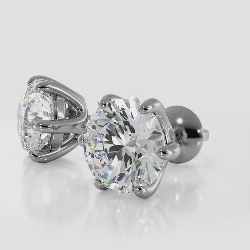 Round Diamond Stud Earrings - Available in 1.00 to 6.00ct
