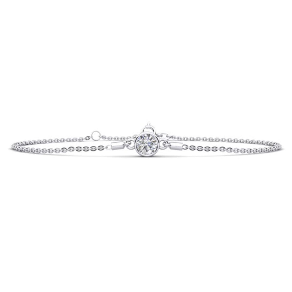 Lab Solitaire Brilliant Round Diamond Adjustable Bracelet- Choice of White Gold or Yellow Gold - .35ct to 1.00ct Total Weight