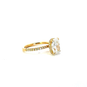 Custom-Made Elongated Cushion Cut Lab Diamond Engagement Ring – Wrap-around Reverse Halo– 18KT Gold
