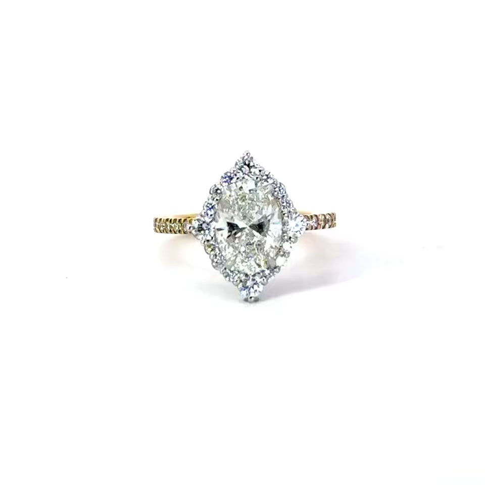 Custom-Made Oval Lab Diamond Engagement Ring – Fancy Halo – 18KT Gold
