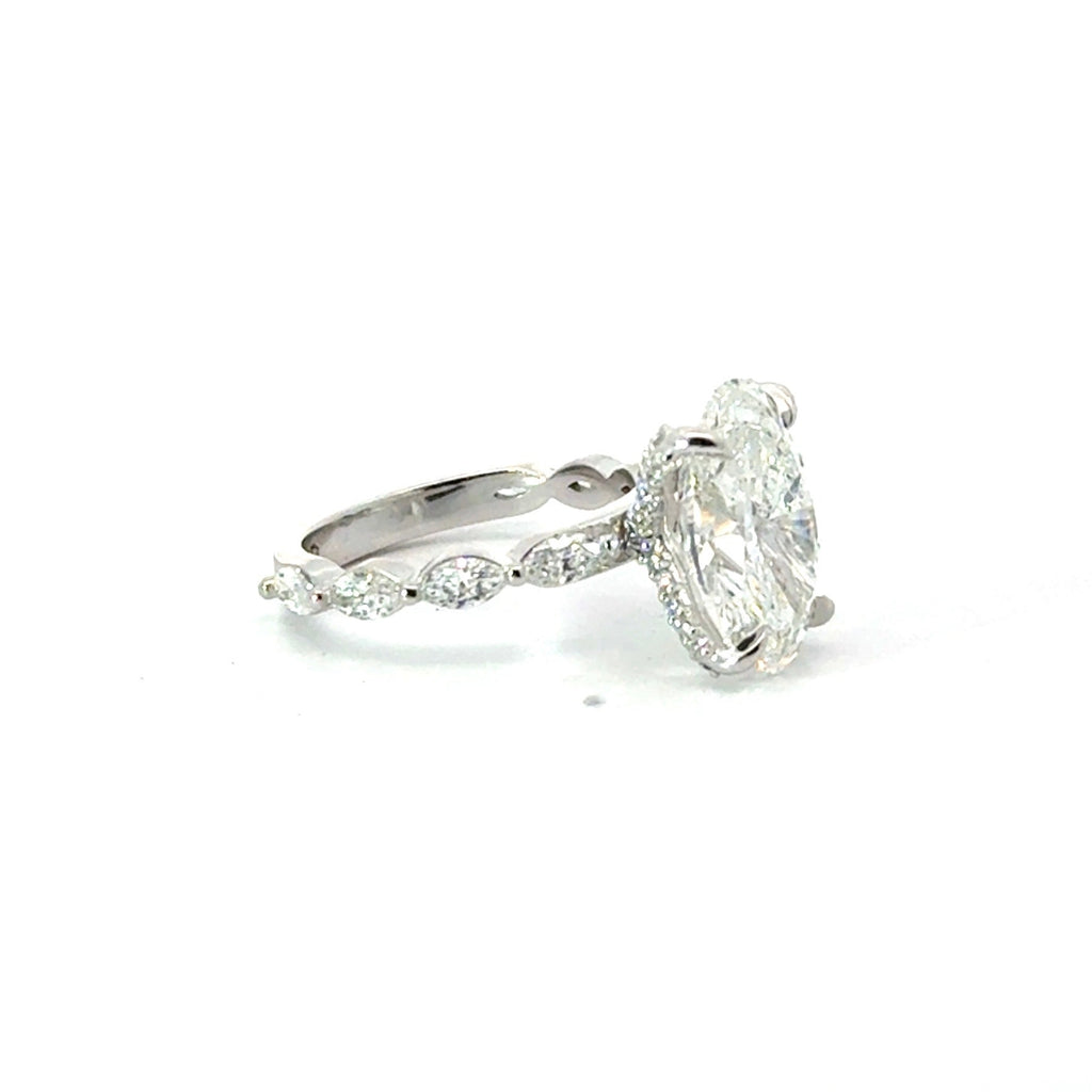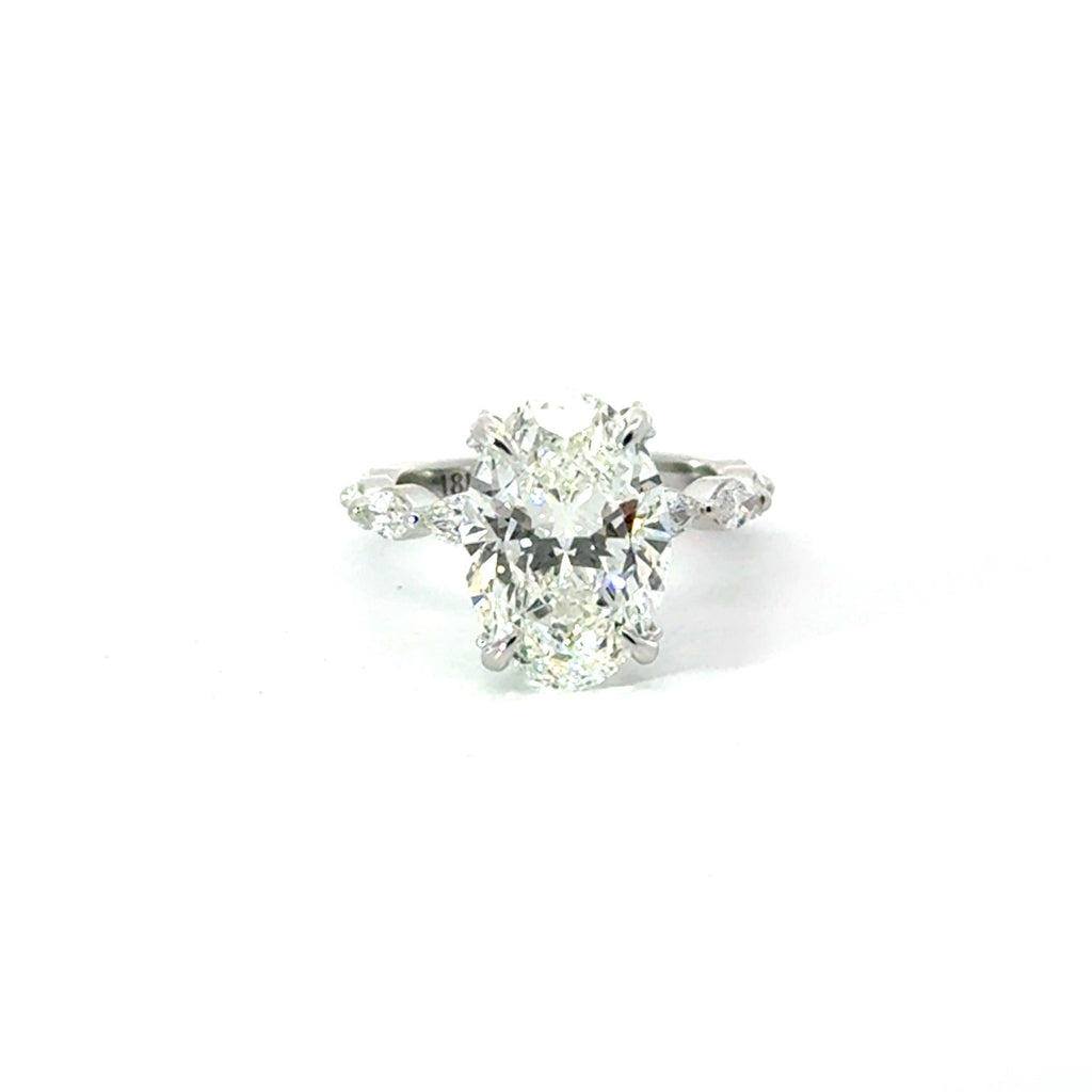 Oval Cut Lab Diamond - Marquise Diamond & Diamond Prong Design - Available in 1.00ct - 7.00ct
