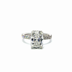 Custom-Made Radiant Lab Diamond Engagement Ring – Diamond Encrusted Prongs – 18KT Gold