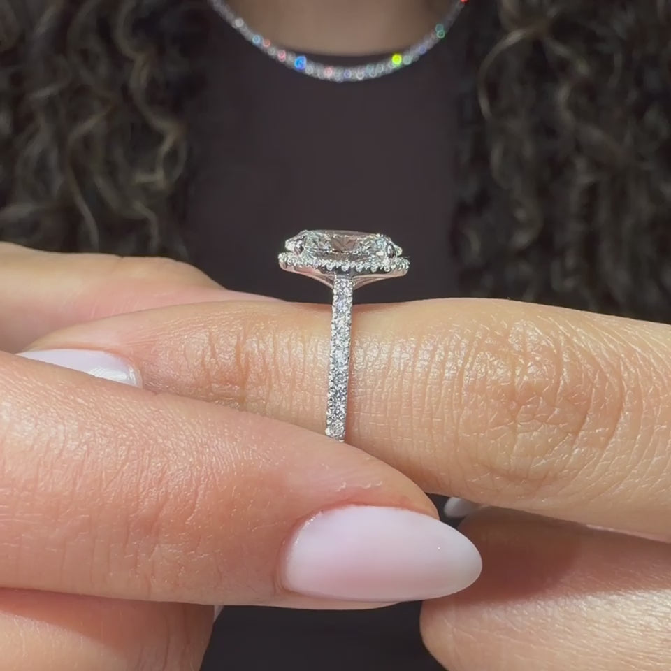 Custom-Made Oval Lab Diamond Engagement Ring – Hidden Halo – 18KT Gold