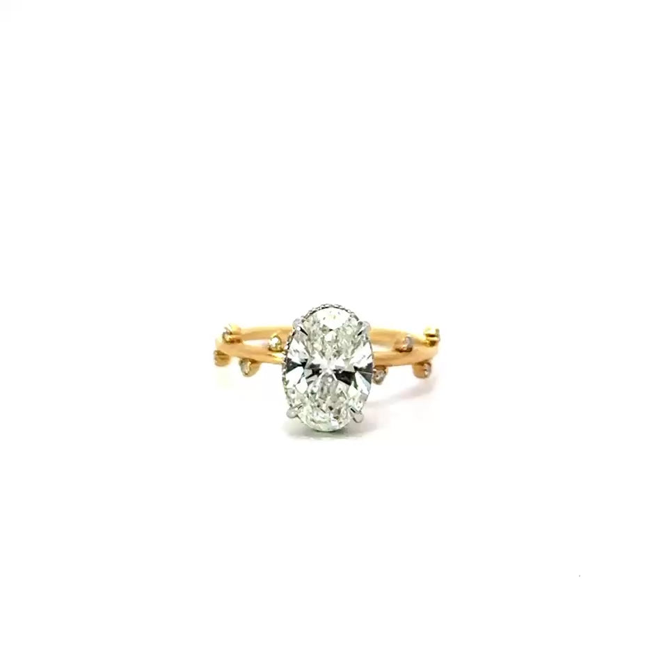 Custom-Made Oval Lab Diamond Engagement Ring – Reverse Halo – 18KT Gold