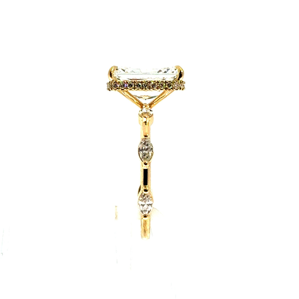 Custom-Made Radiant Lab Diamond Engagement Ring – Reverse Halo – 18KT Gold