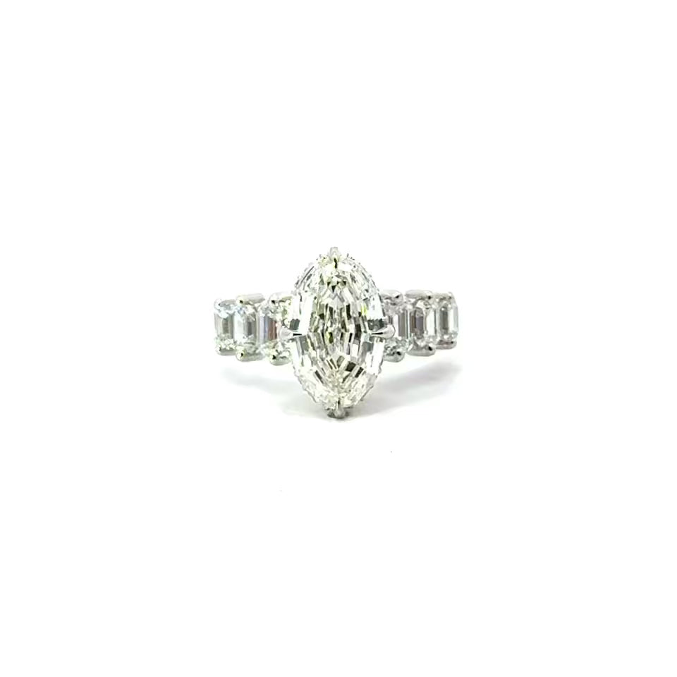 • 3- Graduated Emerald Cut Diamonds on each side
