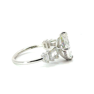 This Diamondboi signature design is a custom-made step-cut oval lab-grown diamond engagement ring featuring a modern reverse halo and a refined graduated emerald cut diamond shank. Each ring is handcrafted to order in your choice of 18KT White Gold, Yellow Gold, or Rose Gold, offering a premium and personalized experience from start to finish.