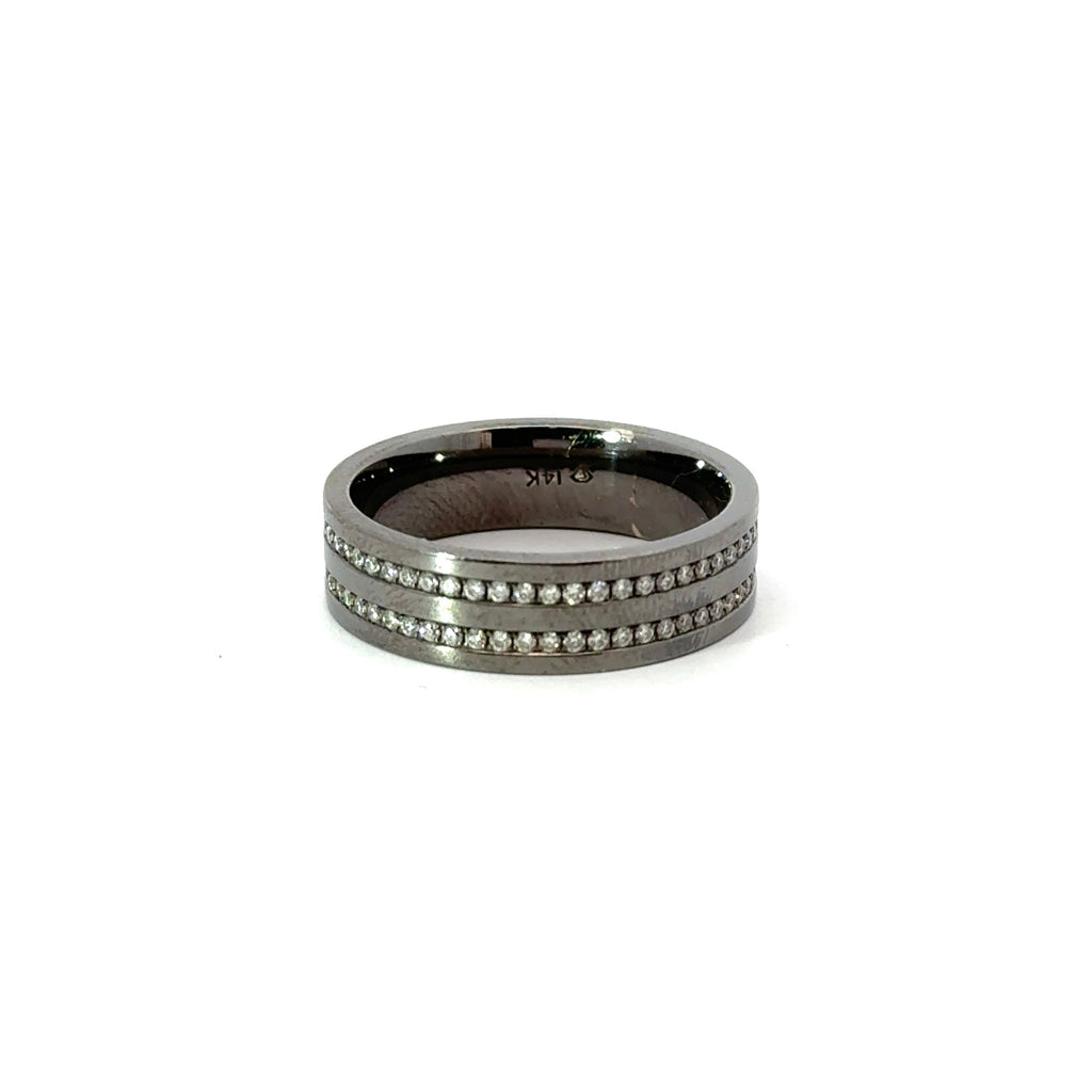 Men's 6MM Flat Wedding Band - 2 Rows Spaced Out Diamonds - Choice of White Gold / Yellow Gold / Rose Gold or Cobalt