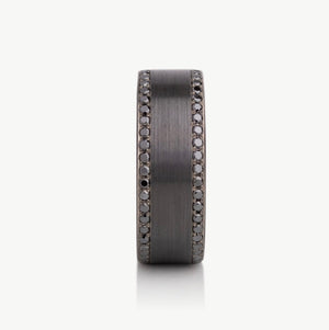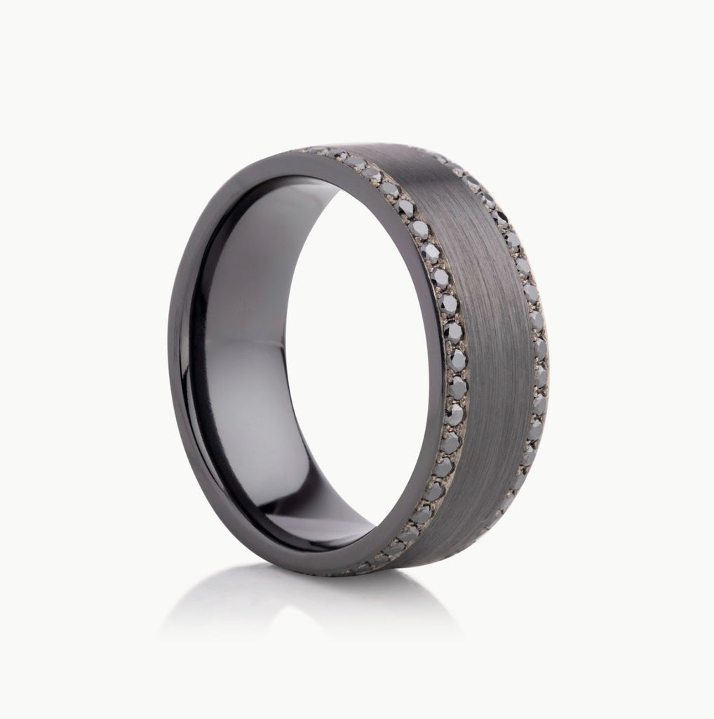 Men's 7MM Flat Wedding Band with 2 Rows of Black Diamonds - Choice of Zirconium