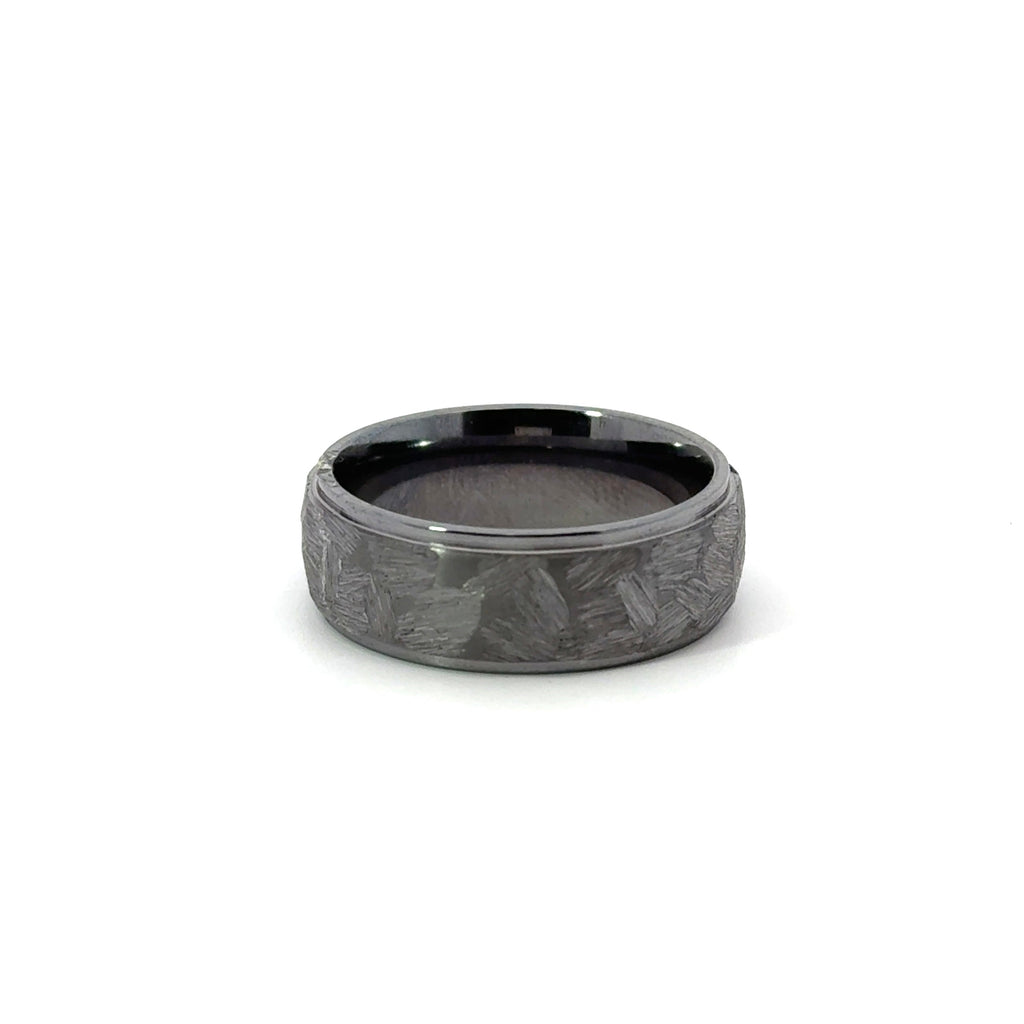 Men's Dome Edged Tantalum Wedding Band- Rock Finish - Choice of 6 / 7 or 8MM