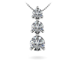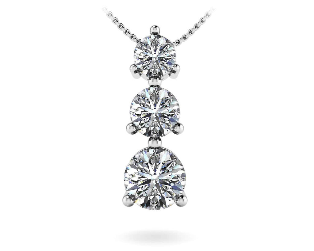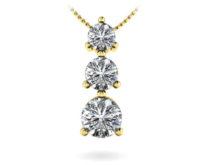 Natural Diamond Three Prong 3 Stone Pendant In 14K Yellow Gold Or White Gold