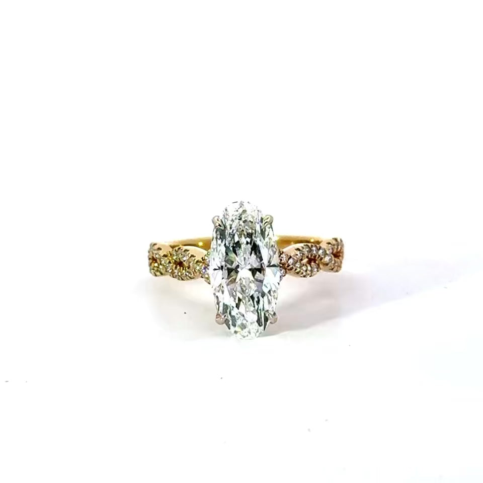 Custom-Made Moval Lab Diamond Engagement Ring – Braided Shank – 18KT Gold
